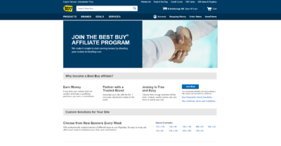 In order to get started, you should head over to bestbuy.com and navigate to their affiliates page or you can head over to their partners' websites. Click on the Join Now button that will take you to their partner that helps with the affiliate marketing program. You will typically need to fill a form with sensitive info about your company, contact info, website info, payment information and then your application will be reviewed by their professional team.