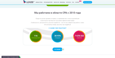 LEADS.su — один из самых крупных агрегаторов партнерских программ в секторе банковских продуктов и обслуживания. Работает с 2010 года.