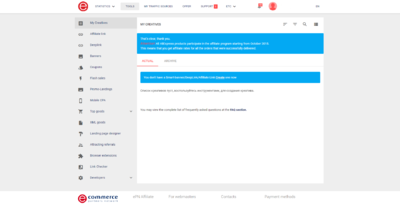This partner network is one of the most technologically advanced, has not only basic and advanced tools to attract traffic, but also user-friendly interface of each menu of the partner cabinet.