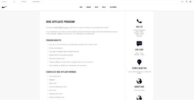 Nike, through various partners, has rolled out an affiliates program that will see publishers and promoters earn a commission for every sell lead they accrue. To join the affiliates program, you have to sign up and wait for your application to be approved. Once your application is approved, you will be provided with an extensive range of Nike ad creatives, banners, and other affiliate links, which you will use on your website to promote the Nike products. Commission is then paid out to those who successfully promote Nike products and make actual sales, because the commission that is paid out to the affiliate is actually a percentage of the net profit from that particular sale.