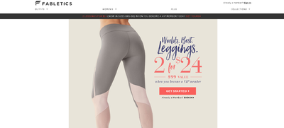 Fabletics is an American online subscription retailer that sells women's sportswear, footwear and accessories, commonly referred to as "athleisure." The company is best known for its e-commerce business approach and also has 22 brick-and-mortar stores. It offers its members personalized outfits chosen for them based on their lifestyle and fashion preferences and claims to be "all inclusive" with a range of sizing. It is a subsidiary of JustFab, which re-branded to TechStyle Fashion Group in August 2016.