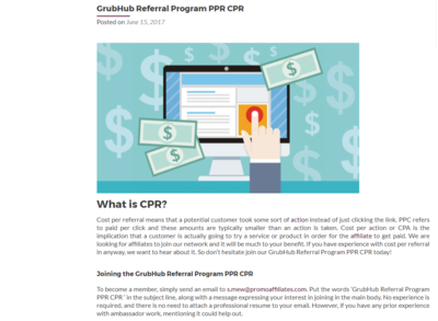 If you are interested in profiting from the traffic and hype surrounding Grubhub, you might consider signing up for Grubhub’s external referral program being offered on the Promo Affiliates website. To sign up, simple head over to the website and follow the directions – you will then be provided a unique promo code which you can promote on your preferred channels (websites, social media, email, etc.).