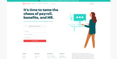 Launched in 2012 as ZenPayroll, Gusto serves more than 60,000 businesses nationwide. Each year we process tens of billions of dollars of payroll and provide employee benefits—like health insurance and 401(k) accounts—while helping companies create great places to work.