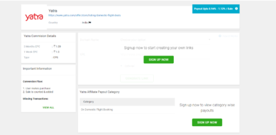 Ятра предлагает вам лучшие предложения по бронированию авиабилетов и бронирования отелей. В своем блоге вы можете настроить таргетинг на путешественников, ищущих лучшие предложения по бронированию авиабилетов и даже проживанию. У Yatra есть предложения, которые подходят для любого бюджета, и ваша аудитория будет рада сделать заказ на Ятру. Поэтому, если вы хорошо используете свои маркетинговые стратегии, вы будете зарабатывать много денег в комиссиях. Зарегистрируйтесь сегодня, если вы еще не зарегистрированы. Это отличная возможность для вас получить дополнительный доход от вашего блога.