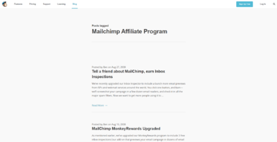 MailChimp does not offer an affiliate program in the traditional sense of the term – there are no cash rewards to be earned via the promotion of MailChimp services. Rather, what you can sign up for is the MonkeyRewards program; however, keep in mind that this is only for MailChimp users.