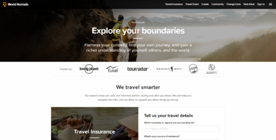 WorldNomads.com is a website that provides international travel insurance and travel safety services for people from 151 countries. Customers can buy the insurance after they have already left home and are already away traveling.