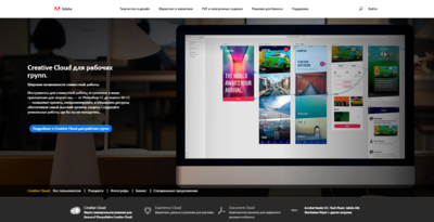 Creative Cloud для различных целевых групп (люди, бизнес, студенты и преподаватели, школы и университеты).