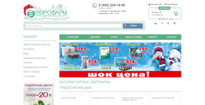 Аптека ЕВРОФАРМ - Интернет-аптека, которая работает для Вас уже более 10 лет. Качественный сервис, быстрая доставка, гарантия качества, квалифицированный персонал наши приоритеты в работе с клиентами. Более 300.000 москвичей доверяют нам, заказывают у нас, получают подарки и скидки.