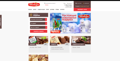 Кондитерская фабрика «Победа» представляет огромный ассортимент шоколадных изделий по доступным ценам. Конфеты, шоколадные плитки, вкусные подарки на все случаи жизни производятся из натуральных ингредиентов при полном соблюдении технологии. Продукция компании популярна во всей России и за рубежом. Растущие продажи — лучшее подтверждение добросовестной работы.