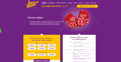 Мы выдаем займы физическим лицам, от 10 000 до 50 000 рублей, на срок до 52 недель.