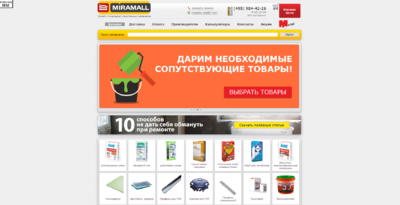 «Miramall» более 10 лет успешно работает в сфере розничных и оптовых продаж, формируя ассортимент качественных товаров для строительных и отделочных работ. Цель строительного сайта – предоставить покупателям всю необходимую продукцию, чтобы они могли купить все необходимые стройматериалы в одном месте.