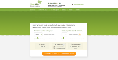 Трудно найти такой передовой и удобный сервис по предоставлению займов на карту физическим лицам, как MoneyClick. Мы даём займы на сумму до 15 000 рублей и на срок до 1 месяца. Специалисты высшего класса построили сервис нового уровня, обращённый лицом к вам, нашим клиентам и пользователям.