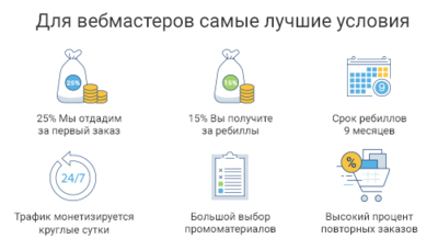 - 25% мы платим партнеру за первый оплаченный заказ.