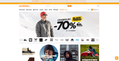 Proskater.ru - это интернет-магазин женской, мужской и детской одежды и обуви, аксессуаров, а также спорт-инвентаря.