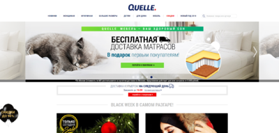 - Регулярные скидки (вероятность продажи увеличивается). В Quelle.ru есть раздел «Распродажа», и «Предложения дня», в которых всегда есть скидки до 70%, и выставляется ряд продуктов, на которые скидка действует только в этот день