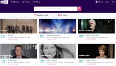 StubHub предлагает множество скидок. Пользователи могут покупать и продавать билеты на мероприятие по лучшей цене миллионам покупателей. Они также могут найти билеты на Golden State Warrior, билеты на Гамильтон и билеты на Oklahoma City Thunder со скидкой до 9 долларов США.