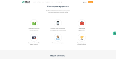 • У Unilead хорошая репутация, эту систему рекомендуют вебмастера и рекламодатели (среди клиентов Unilead крупные фирмы вроде Яндекса, Mail.ru, Ozon.ru, Яндекс.Такси, OLX и других).