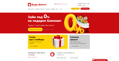 Компания «Ваши Деньги» - микрофинансовая организация, созданная в 2011 году. Деятельность компании активно развивается в Москве, Московской области и в регионах России.