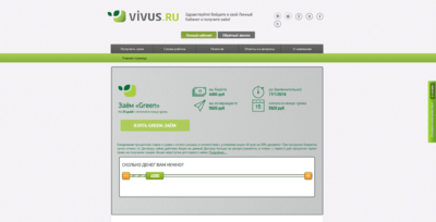 Vivus.ru предлагает наиболее удобные и быстрые займы на российском рынке. Основной продукт Vivus.ru на российском рынке — это заём на сумму от 1000 до 30000 рублей на 30 дней. Для получения займа не нужен залог, поручитель или справка о доходах с места работы. Компания предлагает своим Клиентам революционную для российского рынка технологию — дистанционное оформление займа через интернет.