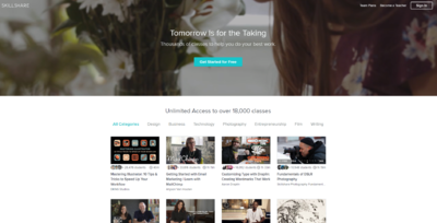 Skillshare organizes courses into advertising, business, design, fashion and style, film and video, food and drink, music, photography, technology, and writing and publishing, often taught by industry leaders. All online courses are self-paced.