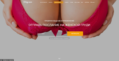 Сервис Титиграм предлагает клиентам послания на женской или мужской груди в виде фото или короткого видео. Это может быть не просто сообщение, а приглашение на мальчишник, поздравление с днем рождения, реклама компании или продукта. Клиентам на выбор предоставляется несколько форматов.