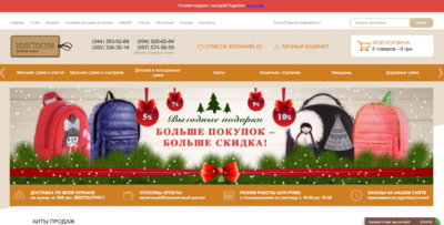 Купить сумку Вы можете не отрываясь от рабочего места, в любое удобное время и без привязки к региону. Ведь у нас предусмотрена удобная и быстрая доставка по Украине. Для Вас мы отобрали лучшие модели сумок как из натуральных, так и синтетических материалов с отличным качеством и стильным модным дизайном.