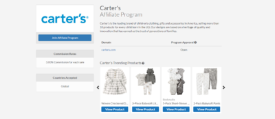 Affiliate programs allow you to use your internet presence to market products from other companies and in return earn commissions for your affiliate marketing efforts. The same principles apply with Carter’s affiliate program. With this project, you are paid a commission for driving traffic to Carter’s online shop, and if the traffic driven to them results in a sale, you will be compensated for driving sales to Carter’s store. With Carter’s affiliate program, you will have an opportunity to monetize your blog or website by promoting Carter’s products to your audience.
