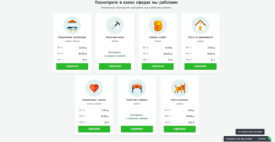 • Сеть предоставляет промо-материалы в виде баз ключевых слов, баннеры, формы для заполнения, тематические виджеты для автоматизированного сбора заявок на сайте (виджет не конфликтует с другой рекламой, размещенной на данной площадке).