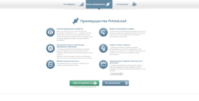 Primelead — украинская сеть CPA-партнерских программ, запущенная в 2013 году (это одна из первых украинских CPA-сетей, генерирующих лиды). Партнерка ориентирована на украинский трафик, хотя им офферы сети не ограничиваются (также в системе есть предложения под трафик со стран СНГ). Большая часть офферов — товарные, игровые, e-commerce, финансовые и мобильные предложения.
