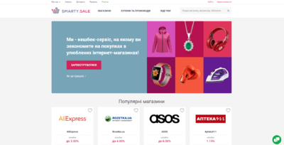 Smarty.Sale сервис по возврату части средств от совершенных пользователями покупок в любимых интернет-магазинах. Сервис работает с более чем 600 магазинами и ежедневно добавляются новые в каталог, чтобы максимально охватить аудиторию, например одни из самых популярных магазинов: AliExpress, eBay, Gearbest, iTunes и другие. Сервис высокотехнологичен, в данный момент более 700 000 довольных покупателей, цифра ежедневно растет и с Вами она будет еще больше. Сайт хорошо оптимизирован по разные типы устройств, работает с практически всеми социальными сетями и готов принимать большие потоки трафика.