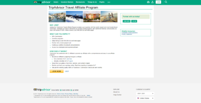 Joining the TripAdvisor Travel Affiliate Program enables you to partner with the world's largest and most trusted travel community. Leverage our brand to enhance your existing travel programs, earn additional revenue, and provide your users with access to 500+ million reviews, plus 500,000 city and hotel pages.