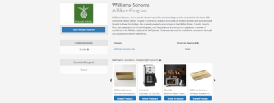 Williams-Sonoma’s affiliate program is managed by VigLink, and be enrolled in it, you have to submit an application and wait for an approval. Once approved, you will be granted creative banners and other ad creatives you embed on your website for promotions. These ad creatives have a special tracker linking with your account, such that for every referral sale recorded from your website, you will earn good money for your marketing efforts.