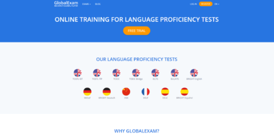Global Exam is an educational online course and exam platform providing you an exhaustive database of content for practice – 266 mock tests, 590 hours of training, 30,000 questions plus a whole lot of enriching study sheets and exercises to work on all aspects of a language (grammar, vocabulary etc).