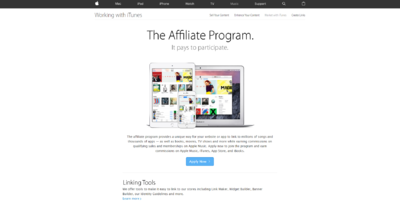 The affiliate program provides a unique way for your website or app to link to millions of songs and thousands of apps — as well as books, movies, TV shows and more while earning commissions on qualifying sales and memberships on Apple Music. Apply now to join the program and earn commissions on Apple Music, iTunes, App Store, and iBooks.