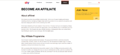 Sky is not new to affiliate marketing, so you will be entering into partnership with an experienced company in this side of making money. Being one of the leading performance companies, you can expect that their affiliate program is the best.