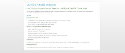 Joining the VMware affiliate program is quite easy. All you have to do is log on to the official site of VMware and sign up for the affiliate program. You will have to wait for approval before you can start earning commissions with your campaigns. The good thing is that once you are approved, you will have access to all the necessary tools for affiliate marketing, including the links, banners and other creatives that are necessary for a successful online marketing campaign. You can then market the VMware products on your site using those affiliate links, and thereafter get to earn a 10% commission for every product sold from your affiliate link.